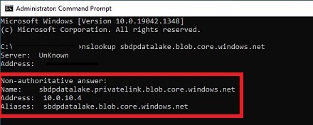 To test the Private Endpoint, we will connect to our virtual machine on the same network as our data lake. In the VM, we need to bring up the Command Prompt by typing 'cmd' via the Run window and utilize the nslookup command.