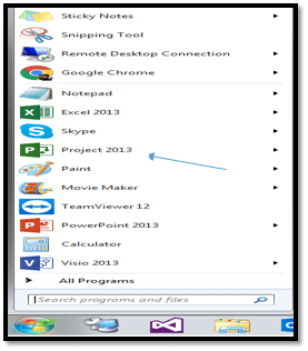 Open your Microsoft Project 2013 app from your Start menu, as shown below.