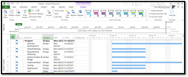 Remember, don’t change the duration at summary task which means at Project 1, when you update the duration in below tasks, the project summary is changed automatically, as shown above.