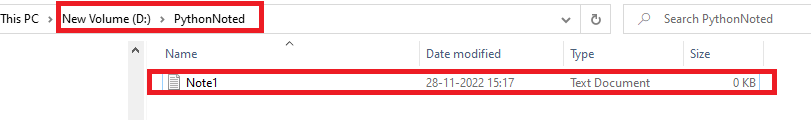 I have created a folder with the name pythonNoted and also a file with the name Note1. Now let's try to delete this folder with the same approach
