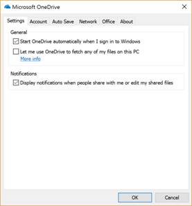 Clicking on "Settings" launches a dialog box with "Settings" and other tabs. In the "Settings" tab, you can Uncheck “Start OneDrive automatically when I sign in to Windows” if you do not wish to start OneDrive.