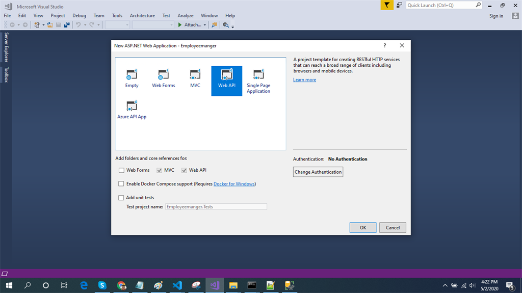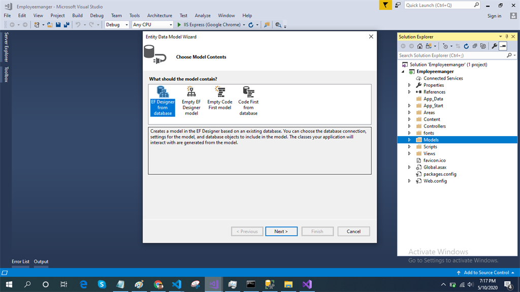 Right-click on the Controllers folder and add a new controller. Name it as "Employee controller" and add the following namespace in the Employee controller.