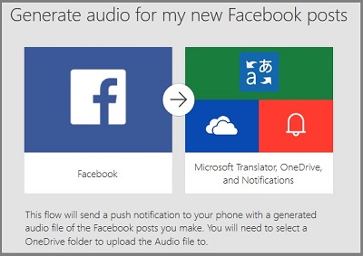 We can track Facebook wall messages and convert those into Audio to store in OneDrive automatically.