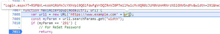 Due to it is not a full URL defined as HTTP or HTTPS protocol, it is not allowed by the URL constructor, we added prefix: "https://www.example.com/" as shown in Line 7008, then we can catch the width value as 291 by