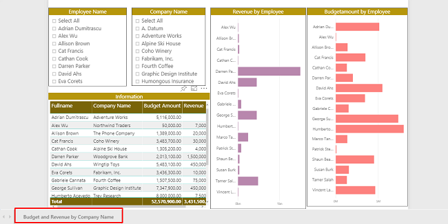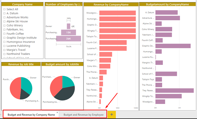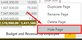 Now, my second report named “Budget and Revenue by Employee” is in development phase and I want to hide this page from the end user.