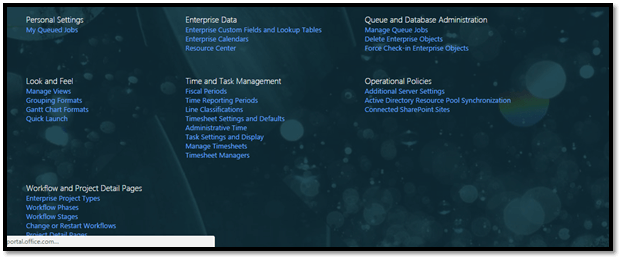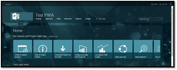 When you click on the Project, you can see the Project online landing page, which is the PWA (Project Web App) site, as shown below.