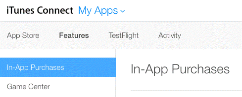 On the top-left corner, you have Features tab where you will create new In App Purchase Product.