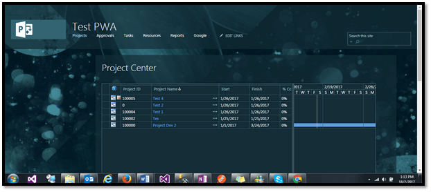 When you click on Project, you can see Project Online landing page which is PWA (Project Web App) site, as shown below.