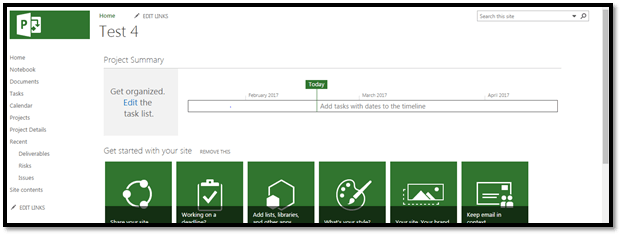 Once we click on Project site, the page navigates to "Test 4" Project site as shown below.
