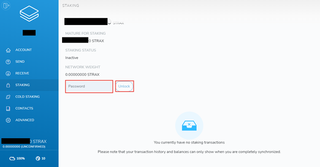 Staking in Strax Wallet