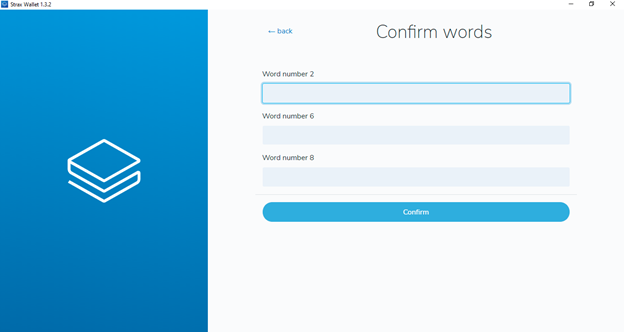 Then provide the secret words for confirmation and click confirm.