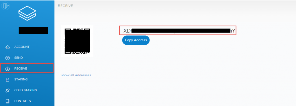 Go to Receive section where you can see the address of the wallet. This is the address you can use for transactions. You can copy and share this address.