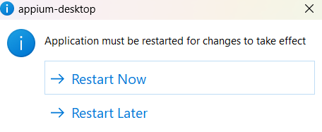 - Click on Restart. Now close the Popup Window and go back to the Appium Server UI Home Page.
