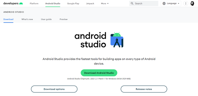Select your Platform. For now, this page automatically selects the windows platform. If you have another OS (Mac, Linux) please select accordingly. Click Download Android Studio Buttonββββββ.