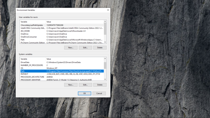 You see one popup called System Variables. At the bottom of the popup, you see one button called Environment Variables and click that button. In System Variables, you see an option called path. Select the path and then click the edit option at the bottom.