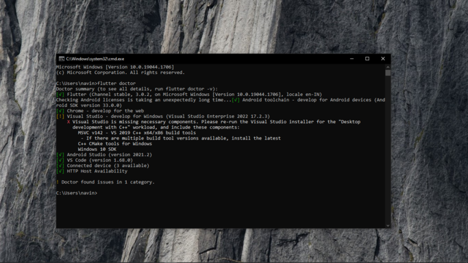 Whoo!.... We successfully installed Flutter in Windows. Let’s check flutter using flutter doctor. Open your command Prompt and enter flutter doctor (All lowercase)