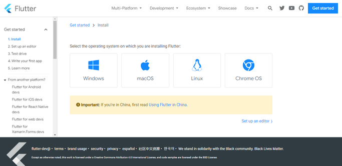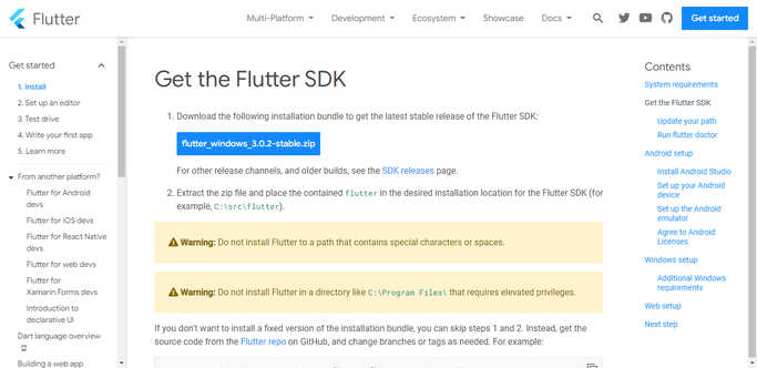 Go to the official website of Flutter Download Flutter SDK. Click Windows