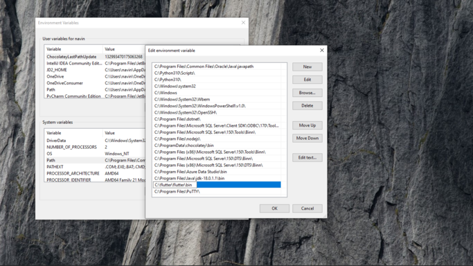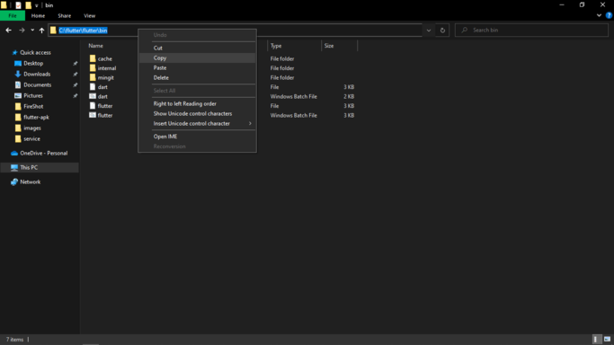 Extract Flutter SDK to C:\flutter. Once you extract it and open the flutter folder then you see a folder called bin. Open bin folder and copy current path.