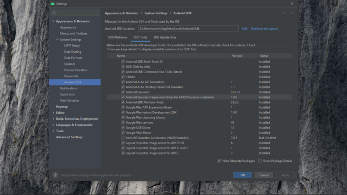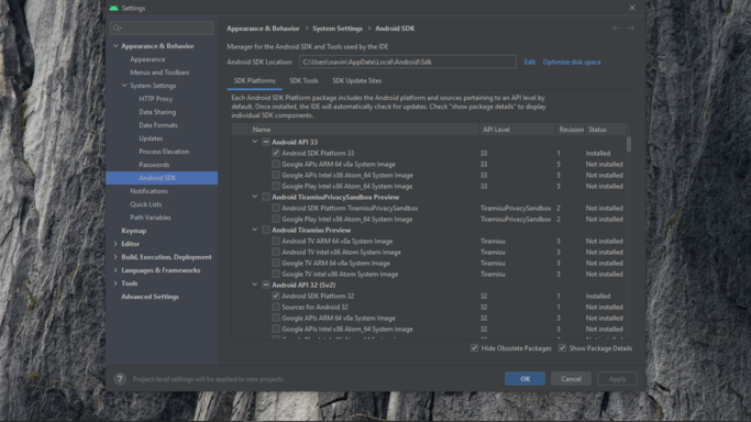 Select your preferred SDK tools but in flutter, we need a mandatory SDK Tool called Android SDK Command Line tools Latest.
