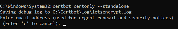 - Download exe installer from https://github.com/certbot/certbot/releases/download/v2.9.0/certbot-beta-installer-win_amd64_signed.exe