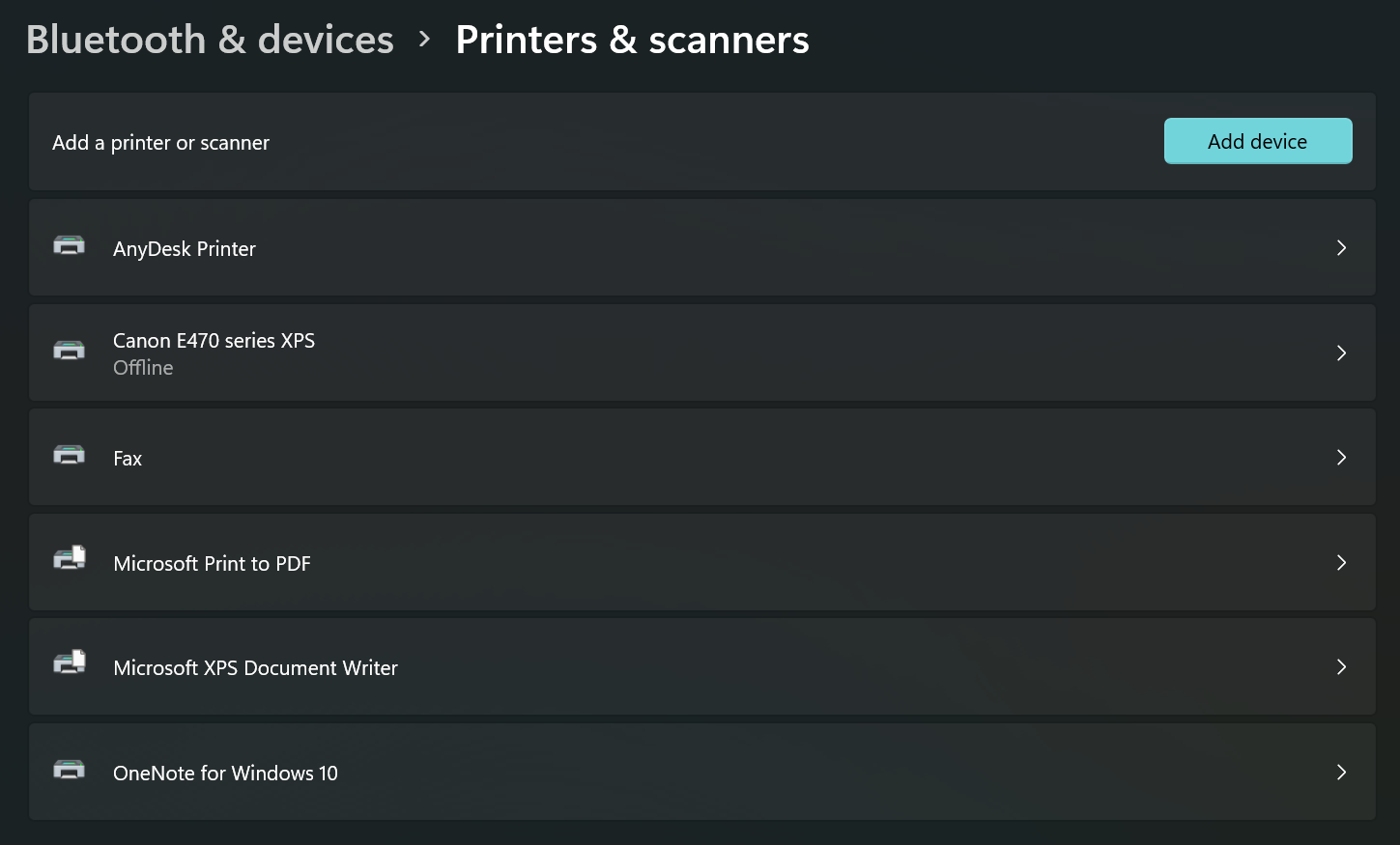 Go to Settings > Bluetooth & devices > Printers & Scanners.