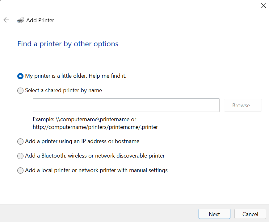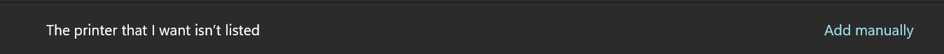 Click on "Add manually" to add the printer manually using the "Add Printer" dialog.
