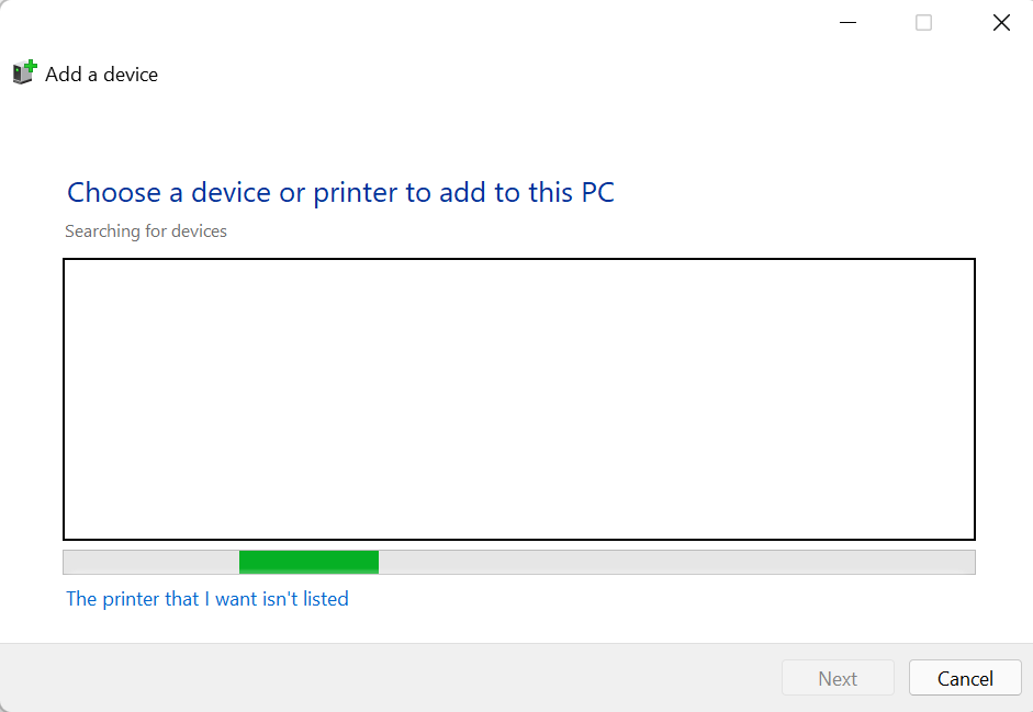 You should see your printer’s name appears here. Otherwise, you will be shown the following.