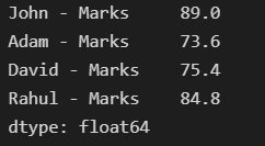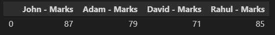 df1 = pd.DataFrame({"John - Marks ":[98,87,87,76,88],