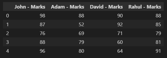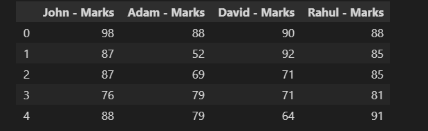 df = pd.DataFrame({"John - Marks ":[98,87,76,88,96],