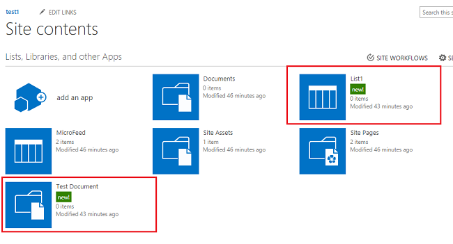To do so, we will select the test1 site. It shows all content to the right side.