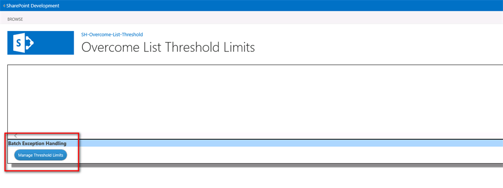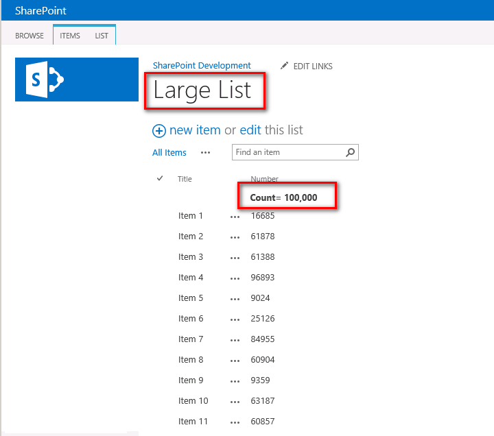 In order to showcase the data access from a Large SharePoint List, I have added a list with 1 Lakh items in it; and default Threshold limits are still intact.