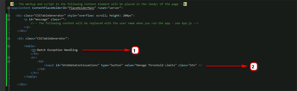 Now, add some HTML for the UI, in the Start Page of the App (default.aspx)