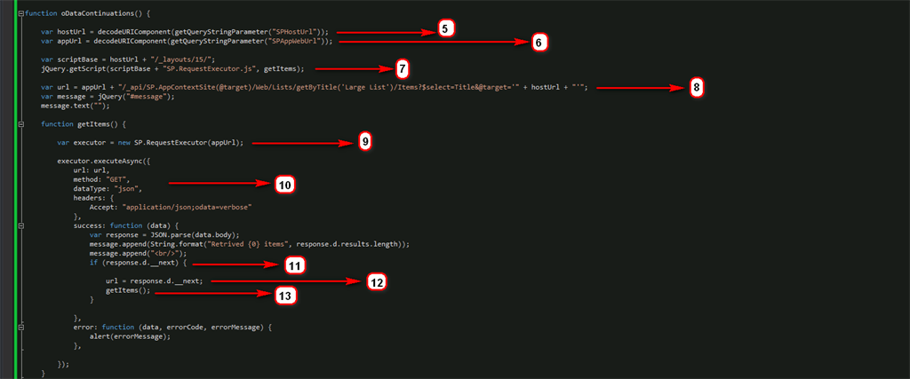 In the Callback function “oDataContinuations”, we have following steps executing-