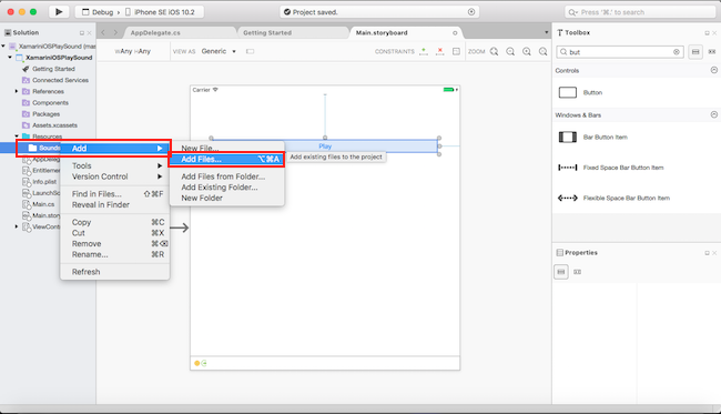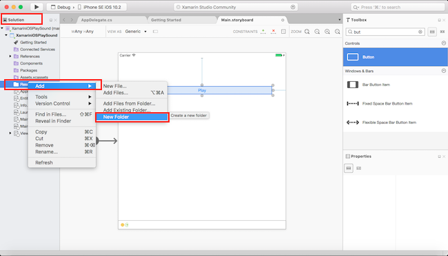 The steps given below are required to be followed in order to play sound in Xamarin iOS, using Xamarin Studio.