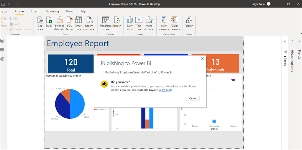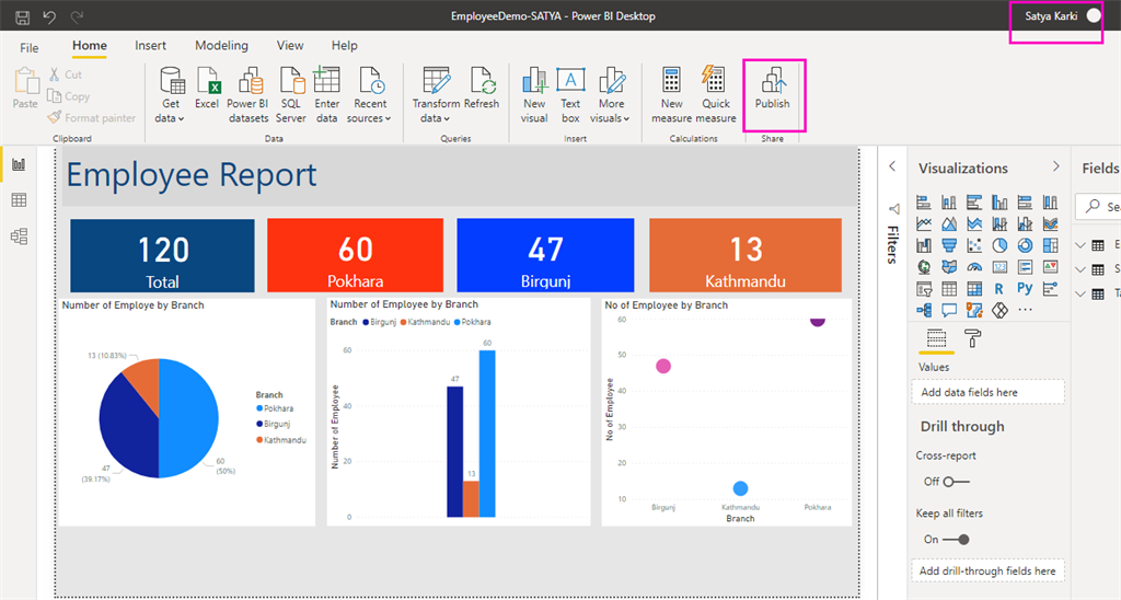Now to publish your reports to Power BI Service online click on Publish option as depicted below.