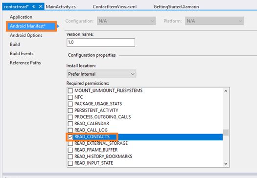 The steps are given below, which are required to be followed in order to view the contacts in Xamarin Android app, using Visual Studio 2015.
