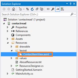 - ListAdapter = new ArrayAdapter < string > (this, Resource.Layout.ContactItemView, contactList);