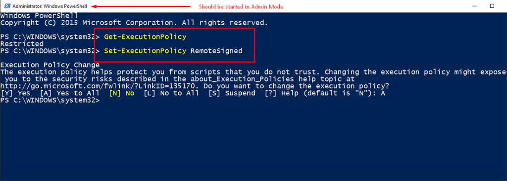 If you encounter this error, set the execution policy to "RemoteSigned" and run the installation command again. Use the command given below: