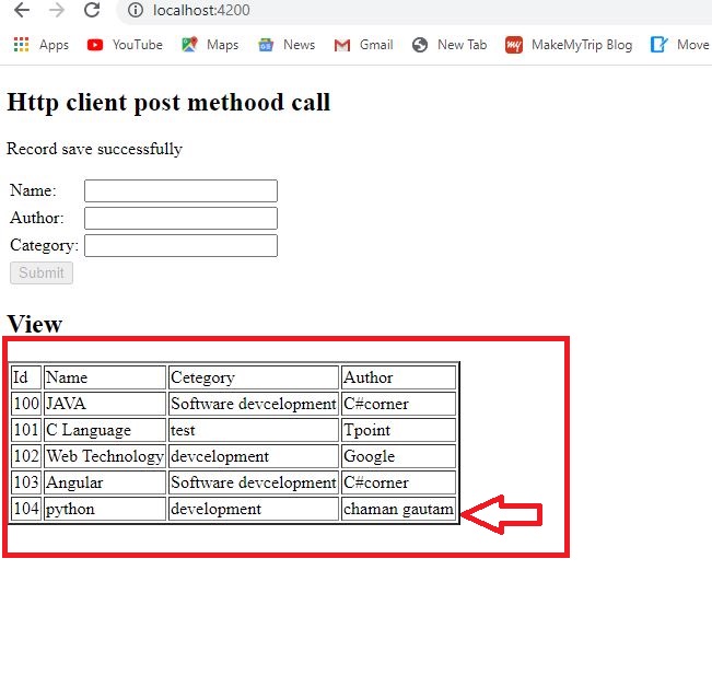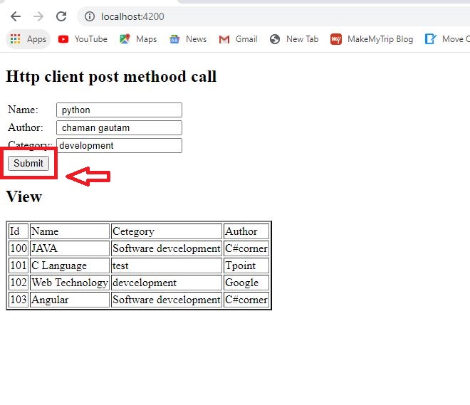 Now you have to create a table and use it for loop with the database name and take a variable name and then put all the field values. Now you have to run this project, after a few seconds, you can see that your application is run successfully. And now you have to fill in all the entries and press the post button. Now you can see that your data will be shown in the form of a table.