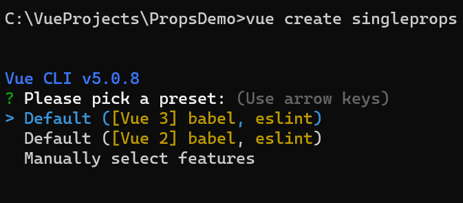 CLI command: vue create single-props