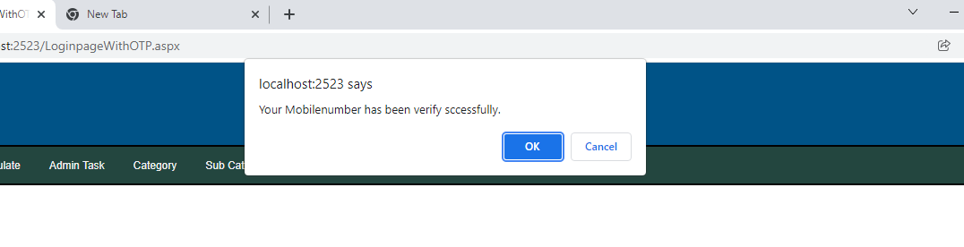 if (txtverifyMobileNO.Text == Session["OTP"].ToString()) {