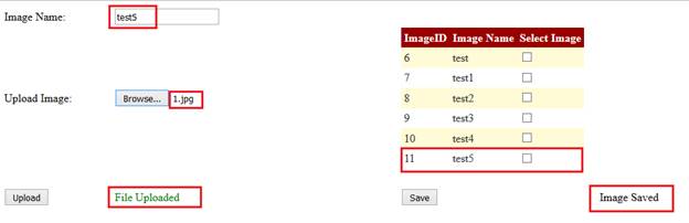Now, the user has chosen to save that test5 image to our database table (tbl_save). The user will select it and press on Save button. You can see your image in tbl_save now.