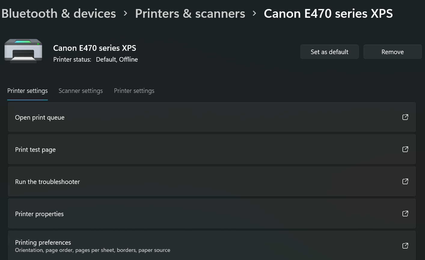 Go to Settings > Bluetooth & devices > Printers & Scanners. Select the printer of your choice to view the printer settings.