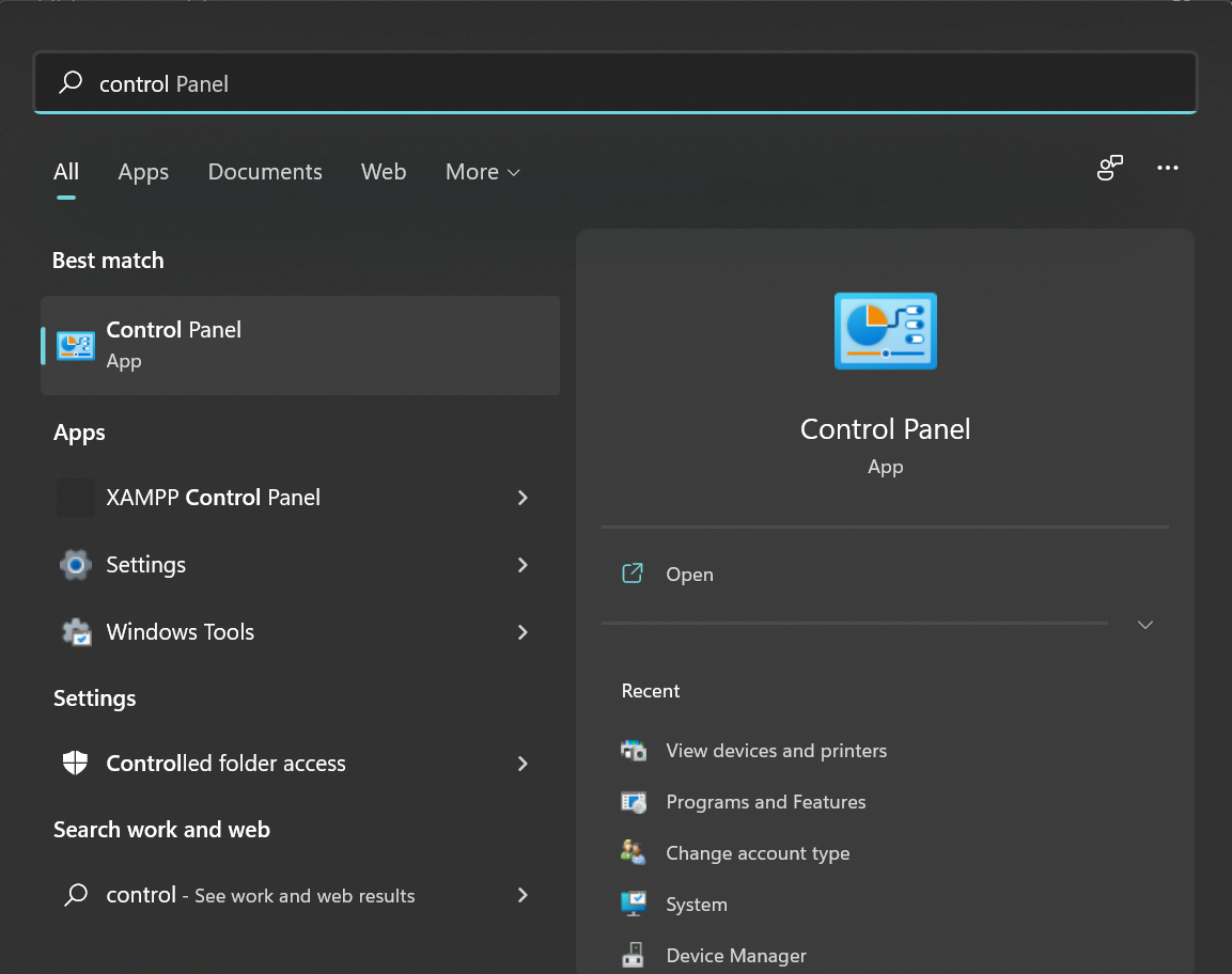Press WIN+S on your Windows 11 machine and search for “Control”.