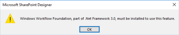 This will save you from error - Windows workflow Foundation, part of .Net Framework 3.0 must be installed to use this feature.