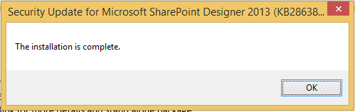 - Security Update for Microsoft SharePoint Designer 2013 (kb2863836)