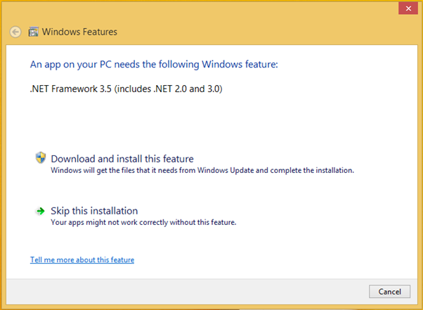 When you start the installation, it will take a moment to identify the features to be install. Click “Download and install the feature”.