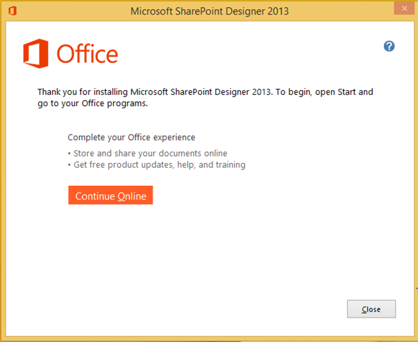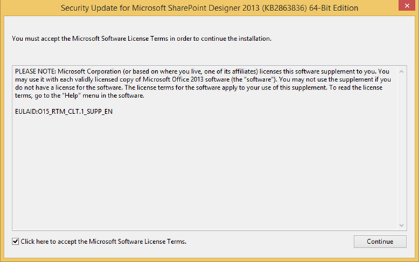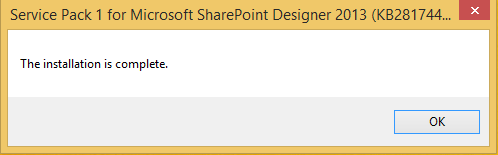 This will complete the full installation of SharePoint Designer 2013 with all the security updates required.