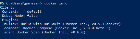 - Open the Powershell and check if the docker is installed or by running the below command.