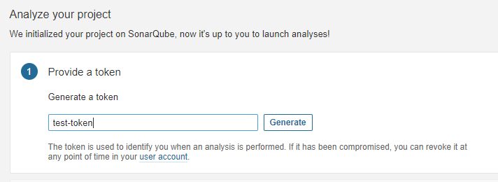 - Enter the token name and click the "Generate" button. You will get the sonar token.